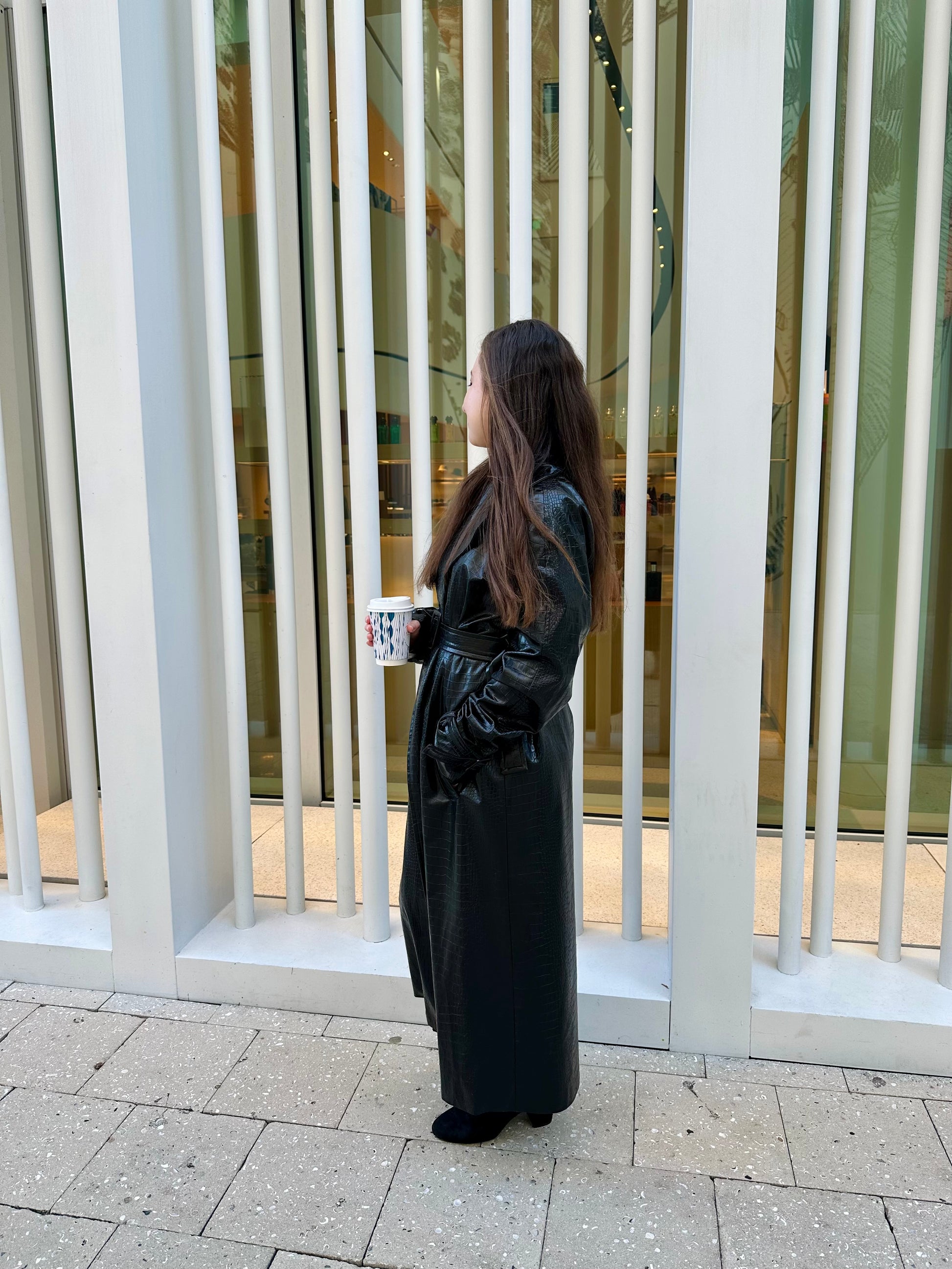 A unique, fashion-forward trench coat crafted to elevate any look. Designed with a bold crocodile-embossed texture and a relaxed silhouette, this piece blends elegance, comfort, and statement style