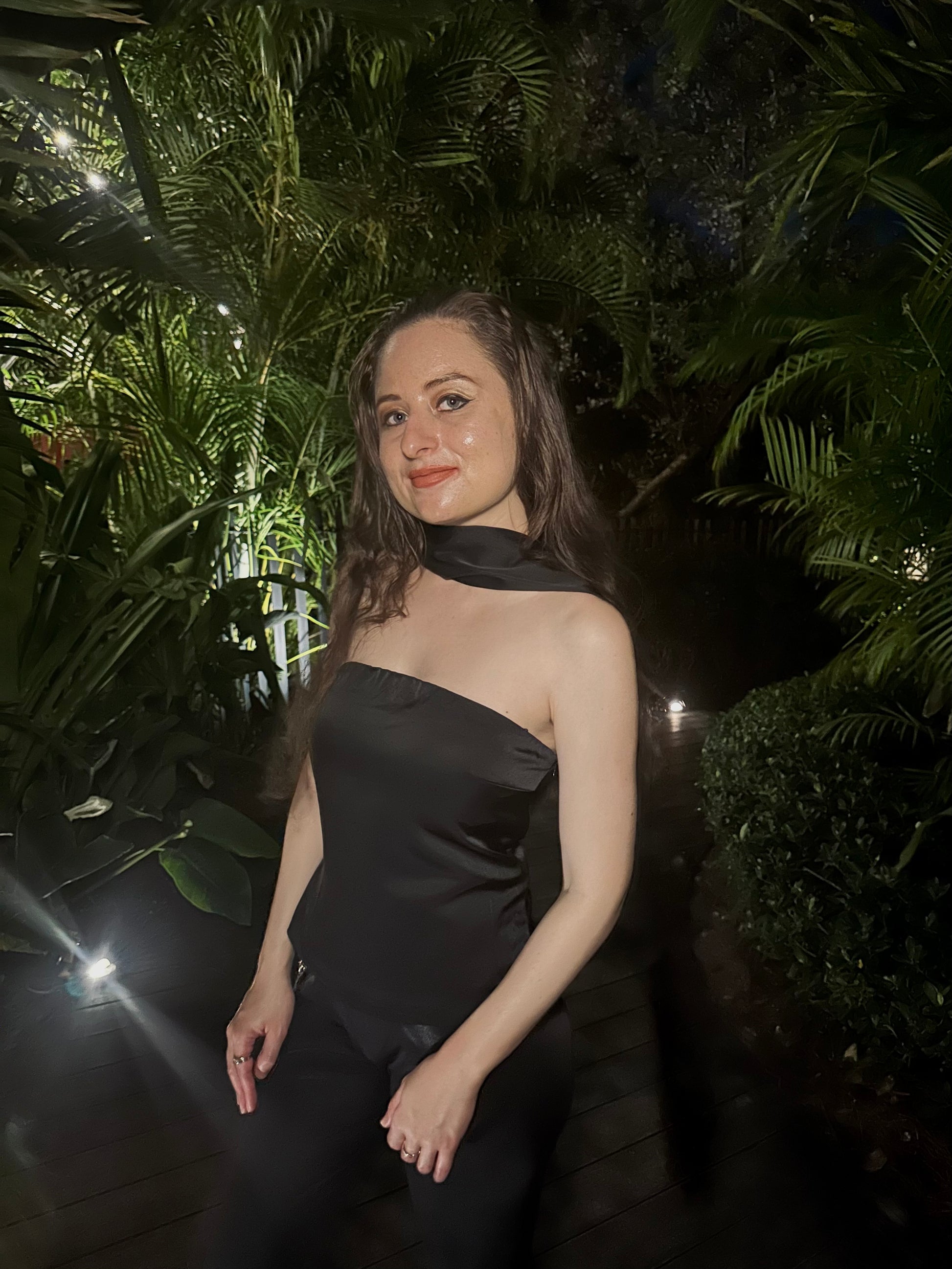- Strapless satin tube top with attached neck scarf, available in Black and Ivory